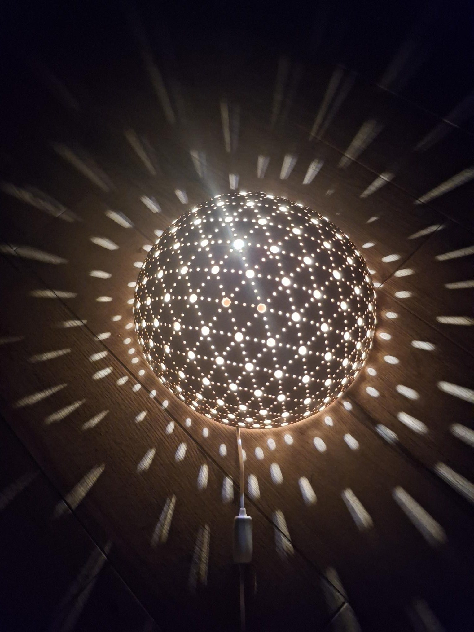 Luminaire calebasse petits motifs style arlequin